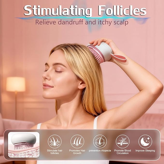 - Stimulate Follicles & Promote Hair Growth: Hair brush with vibrating function quickly relaxes the scalp and stimulates the hair follicles. Comb through tangled hair. Prevents hair from getting tangled ,without damaging the hair strands. Massage for 10 minutes at work or in the morning and evening before bed. gently massage ,Cleanses follicles of oil and exfoliates. excellent for stimulating the scalp and improving circulation. encouraging hair growth. Scalp Massage Tools to Prevent Hair Loss