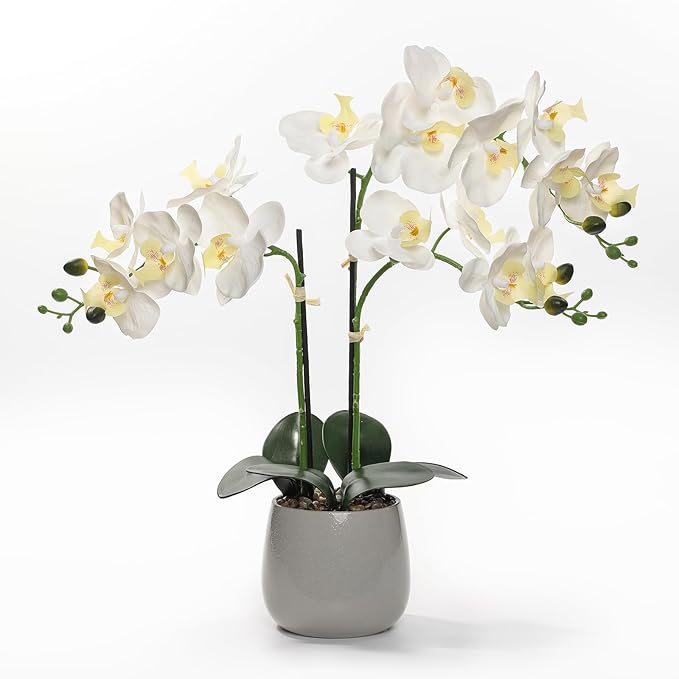 - PERFECT SIZE: Standing at 21 inches tall in a contemporary gray ceramic pot, this faux orchid makes an elegant statement piece while maintaining a manageable display size